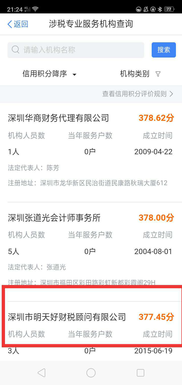 個人所得稅是國家稅務(wù)總局推出的官方稅收管理、個稅申報系統(tǒng)手機應(yīng)用,其中使用APP中的“涉稅專業(yè)服務(wù)機構(gòu)查詢”功能查詢,明天好財稅公司排名2020年深圳涉稅專業(yè)服務(wù)機構(gòu)前3名。